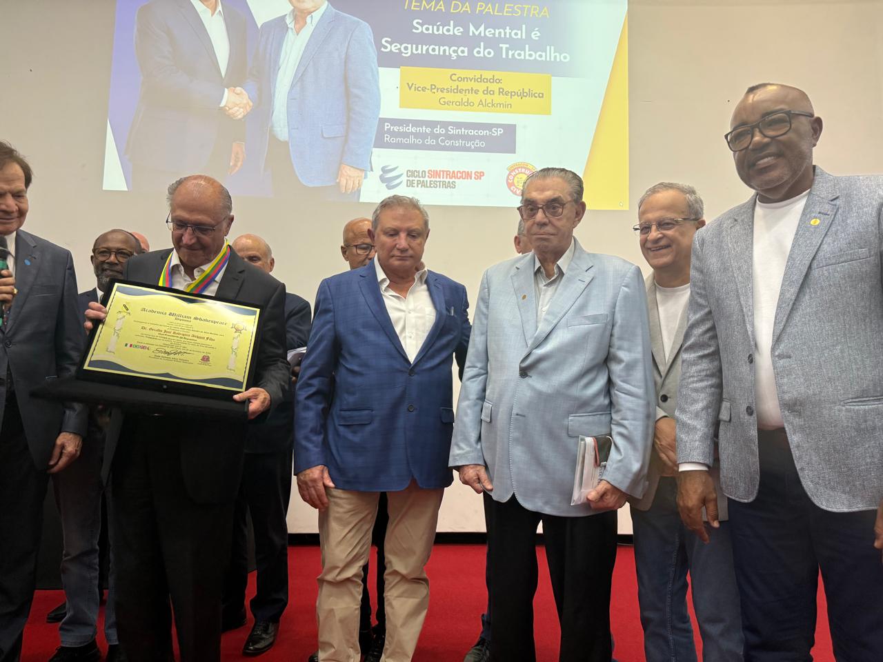 O coordenador-geral do Sindticcc, Antonio Ubirajara, o Bira, participou nesta quinta-feira, 06/02, da palestra “Saúde Mental é Segurança do Trabalho”, proferida pelo vice-presidente da República, Geraldo Alckmin. O evento aconteceu no auditório do Sintracon-SP, na capital paulista, e reuniu autoridades, lideranças sindicais e trabalhadores.